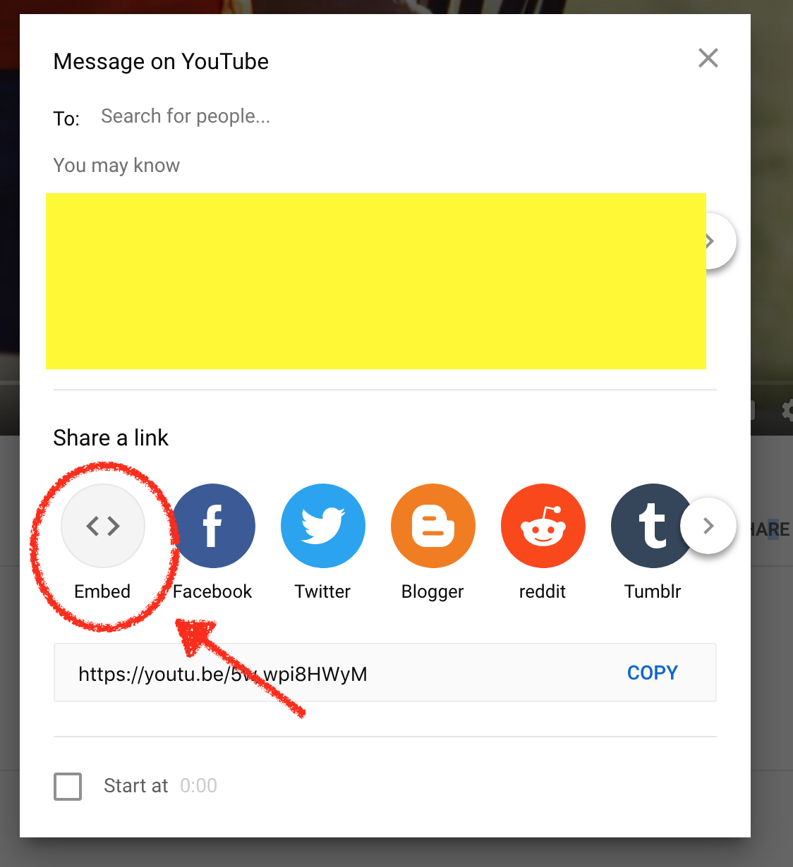2. Within the popup box, you will see an “Embed” option, click Embed.