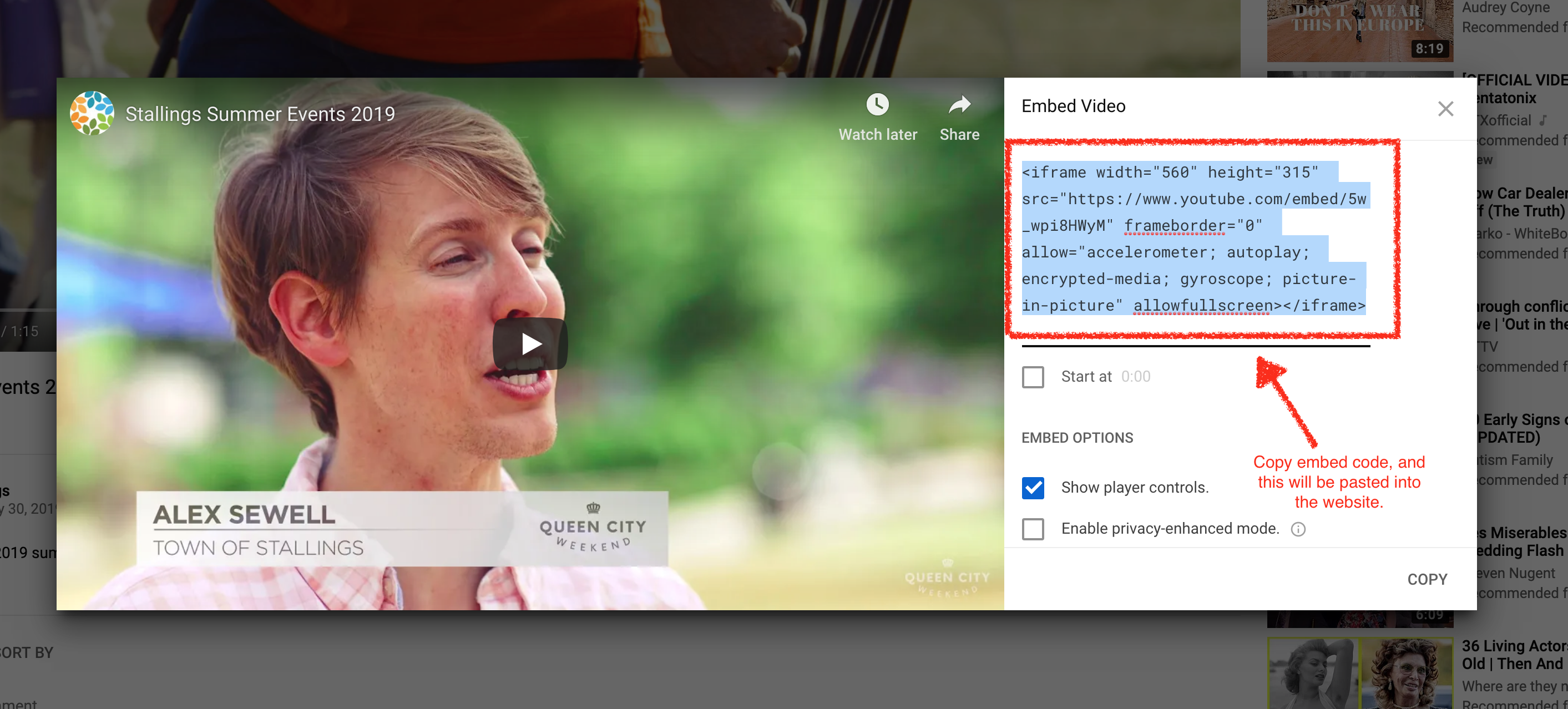 Copy the embed code (Control + C), then in the next step you will paste this code into the website where you would like the video to appear.