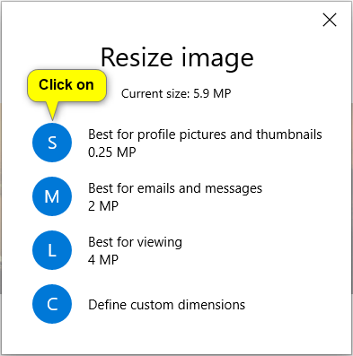 3. Click/tap on S (small), M (medium), L (large), or C (custom) for the size you want to resize the image with.